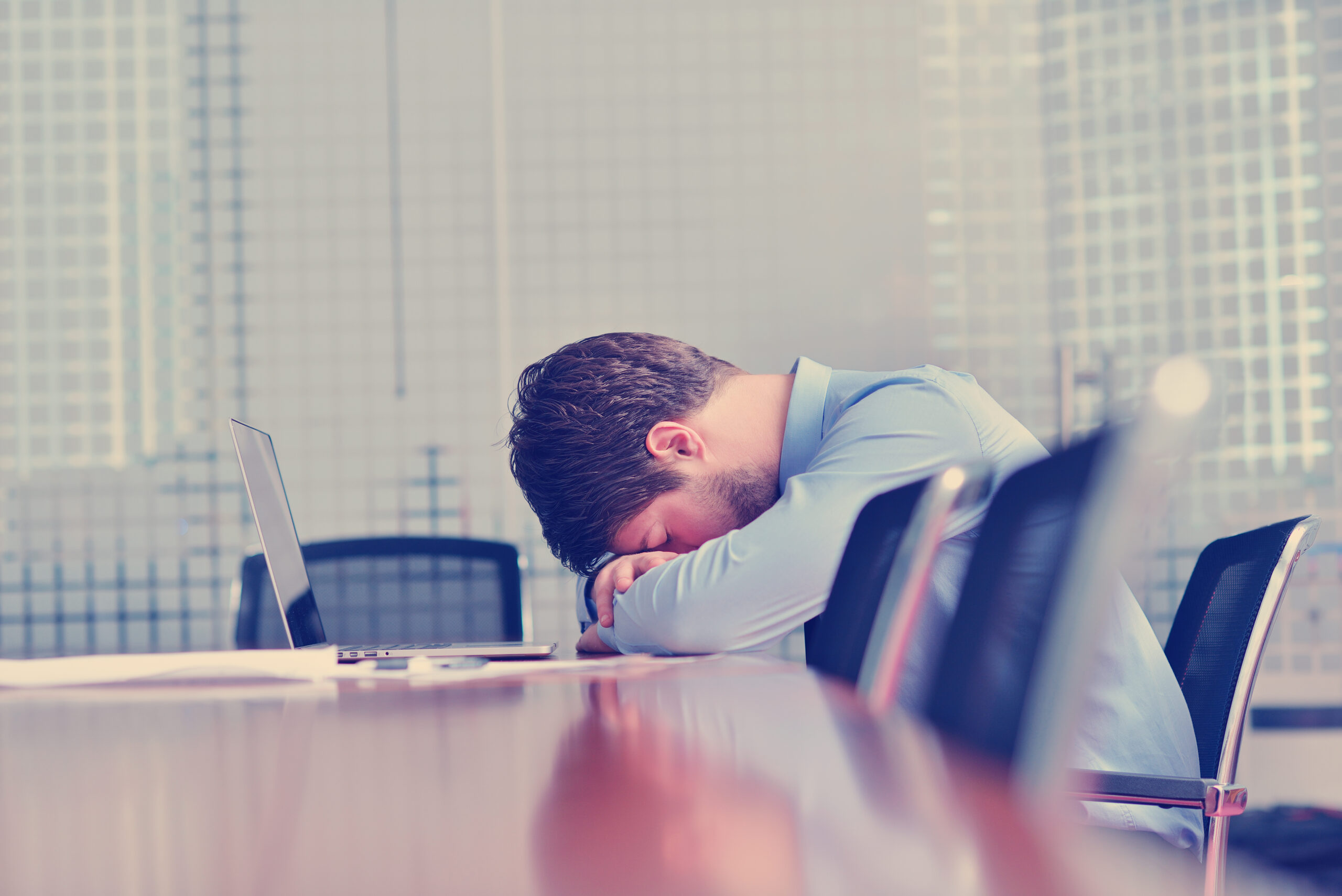 Young business man with problems and stress in the office